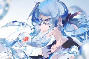 水色眼睛 水绿色的头发 手套 10629 x 7086