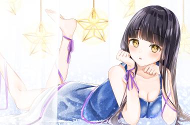 黑发 脸红 袜带 8186 x 5788